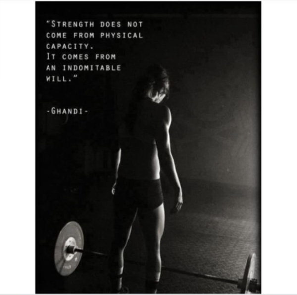 His red top attracts me me..with the word Strongfit.