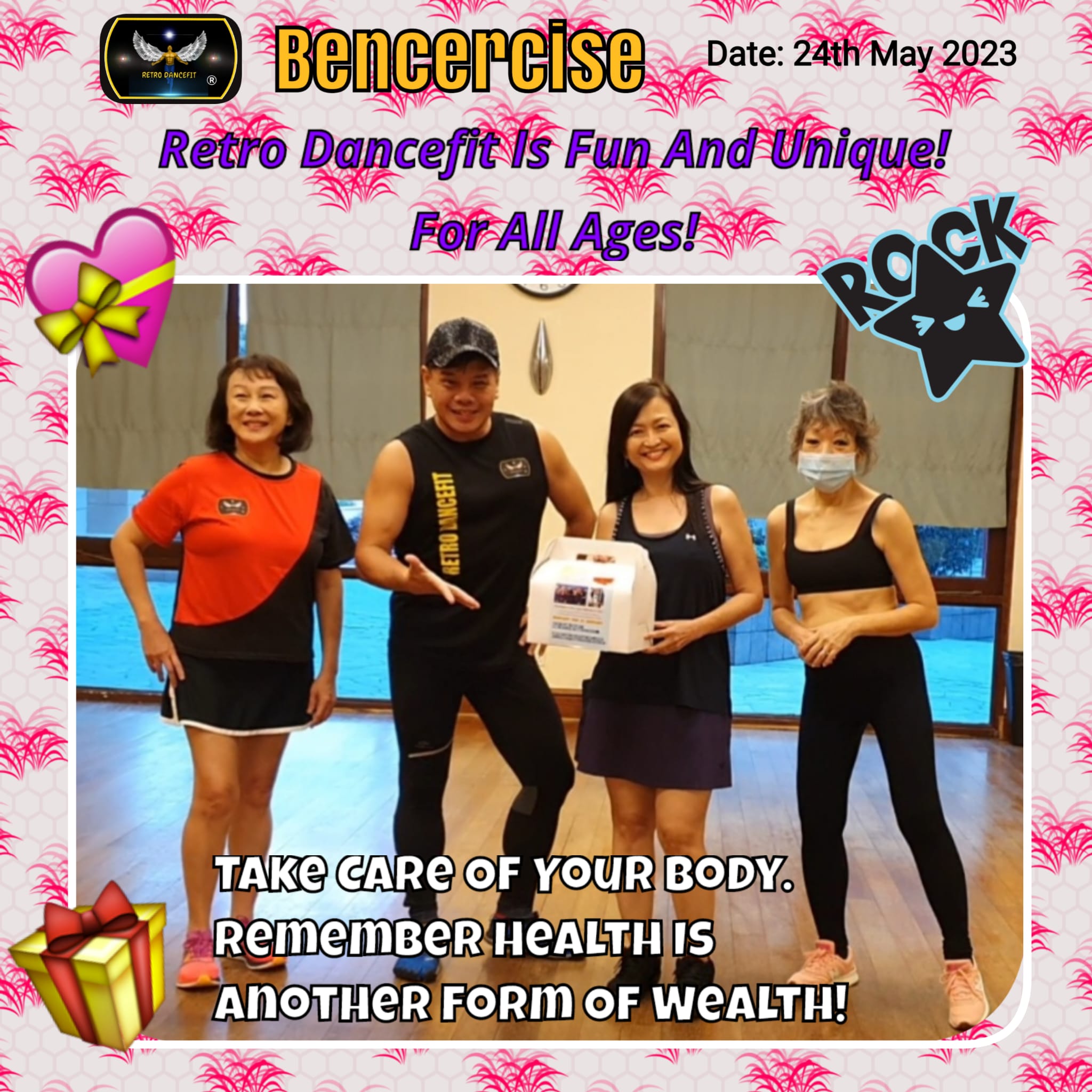 "Workout with Bencercise is healthy and it built individual self confidence. Love all the songs and movements are dynamic. Join us and feel healthy fitter and positive mind set." Cheers!